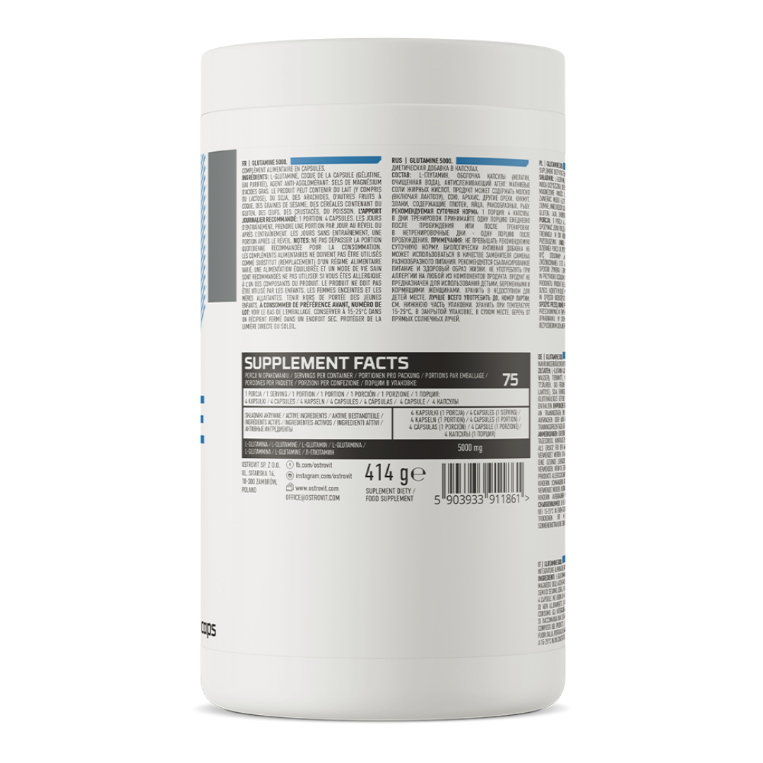 OstroVit Глютамин – высококачественная биологически активная добавка, которая является источником аминокислоты L-глютамин. Это продукт с простым составом, доступный в виде легко глотаемых капсул. Продукт предназначен спортсменам и людям, желающим дополнить свой рацион ценным соединением.