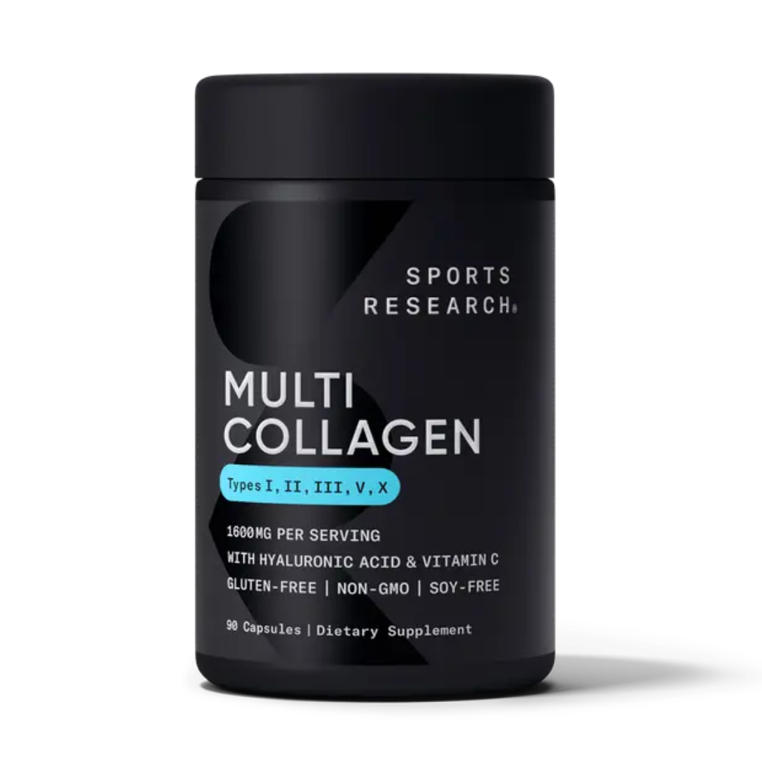 Мульти Коллагеновый комплекс c Гиалуроновой кислотой и Витамином С, Multi Collagen Capsules with Hyaluronic acid and Vitamin C от бренда sports research (спортс ресерч) – идеальный продукт, восполняющий все потребности организма в коллагене. Новейшая формула сочетает в себе 5 типов коллагена плюс витамин С – необходимый микроэлемент, жизненно важный для синтеза коллагена и гиалуроновую кислоту – компонент, питающий клетки кожи и суставов.