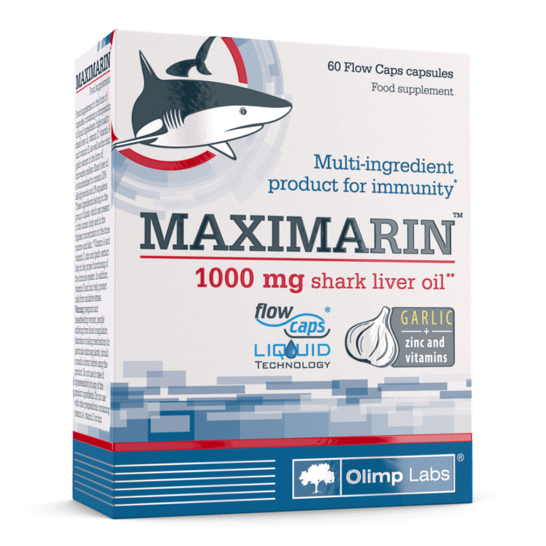 Максимарин – инновационный комплекс для максимальной поддержки иммунитета, включающий высококачественный жир печени акулы с содержанием 20% алкилглицеролов и 2% сквалена, а также витамины A, D и E, цинк и экстракт чеснока. Ингредиенты защищены инновационной технологией Flow Caps, обеспечивающей их быстрое усвоение, высокую биодоступность и сохранение всех полезных свойств. Максимарин помогает укрепить иммунитет, защитить клетки от стресса и поддерживать здоровье в любое время года.