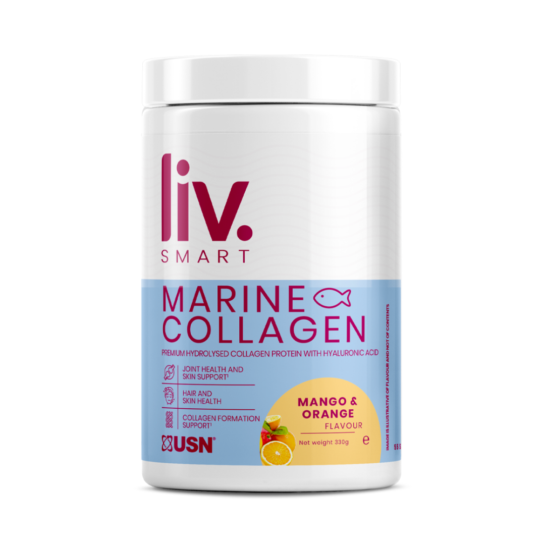 Морской коллаген Marine Collagen LivSmart от USN – это пищевая добавка на основе гидролизованных пептидов морского коллагена, обогащённая гиалуроновой кислотой и витамином C. Коллаген, получаемый из рыбы, укрепляет кожу, суставы, волосы и ногти, обеспечивая их эластичность и прочность. Гиалуроновая кислота увлажняет кожу, сохраняя её упругость, а витамин C стимулирует синтез коллагена и защищает клетки от свободных радикалов. Регулярный приём способствует поддержанию молодости и общего здоровья.