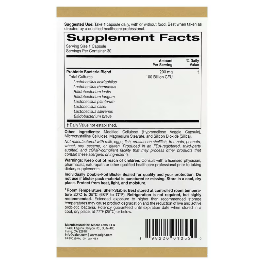 В вашем организме живёт много полезных бактерий, которые поддерживают важные функции, однако ваш естественный микробиом может утратить баланс, что часто приводит к неприятным проблемам с пищеварением. Пробиотики LactoBif® 100 от California Gold Nutrition могут способствовать поддержке баланса в кишечнике благодаря большему количеству полезных бактерий, что поддерживает здоровье пищеварительной и иммунной систем, а также потенциально облегчает распространённые проблемы с пищеварением*.