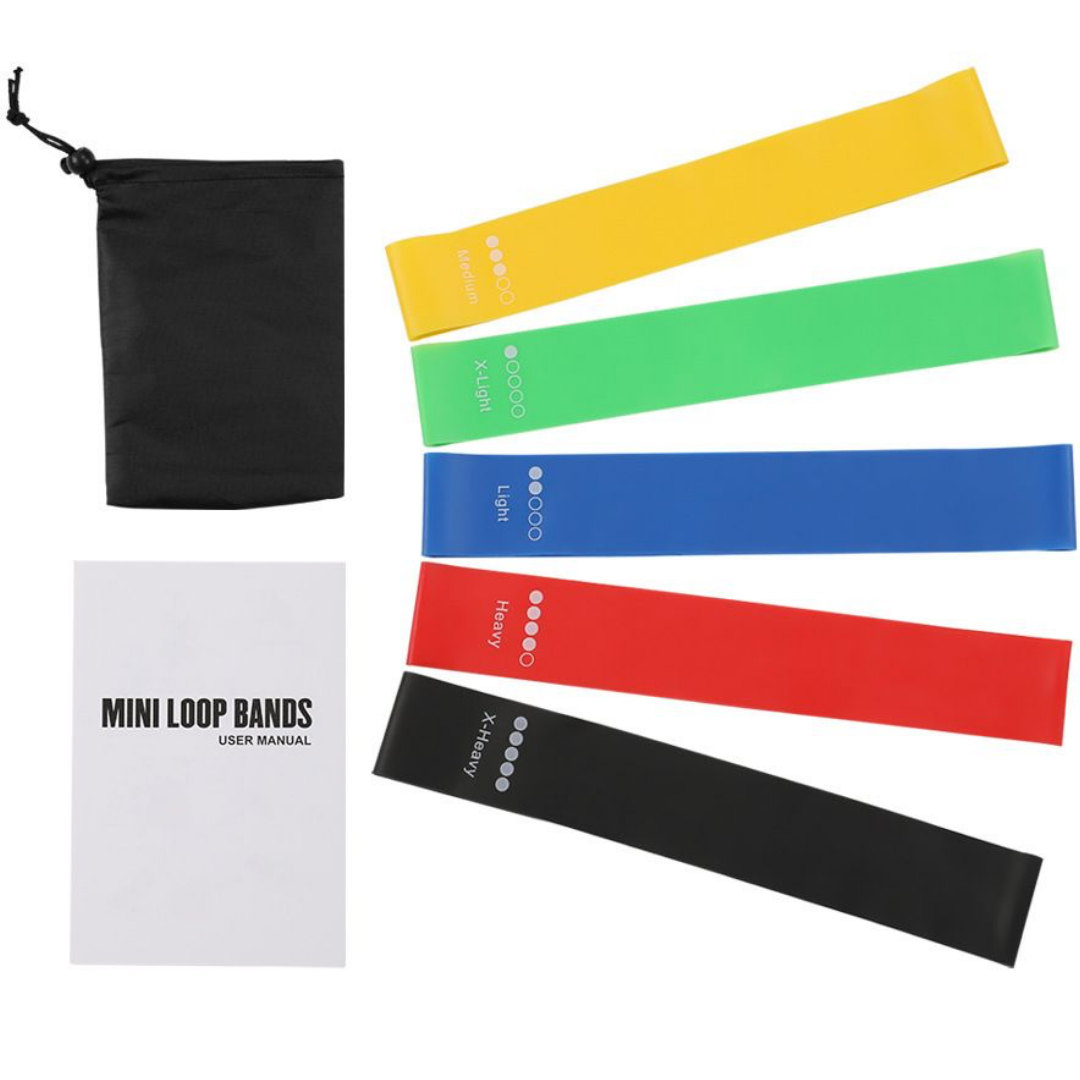 В набор входят 5 лент различной упругости, которые можно определить по маркировке. Вы сами сможете подбирать необходимую нагрузку для своих тренировок. При помощи резинки можно выполнять упражнения для ног, ягодиц, рук и верхнего плечевого пояса.
