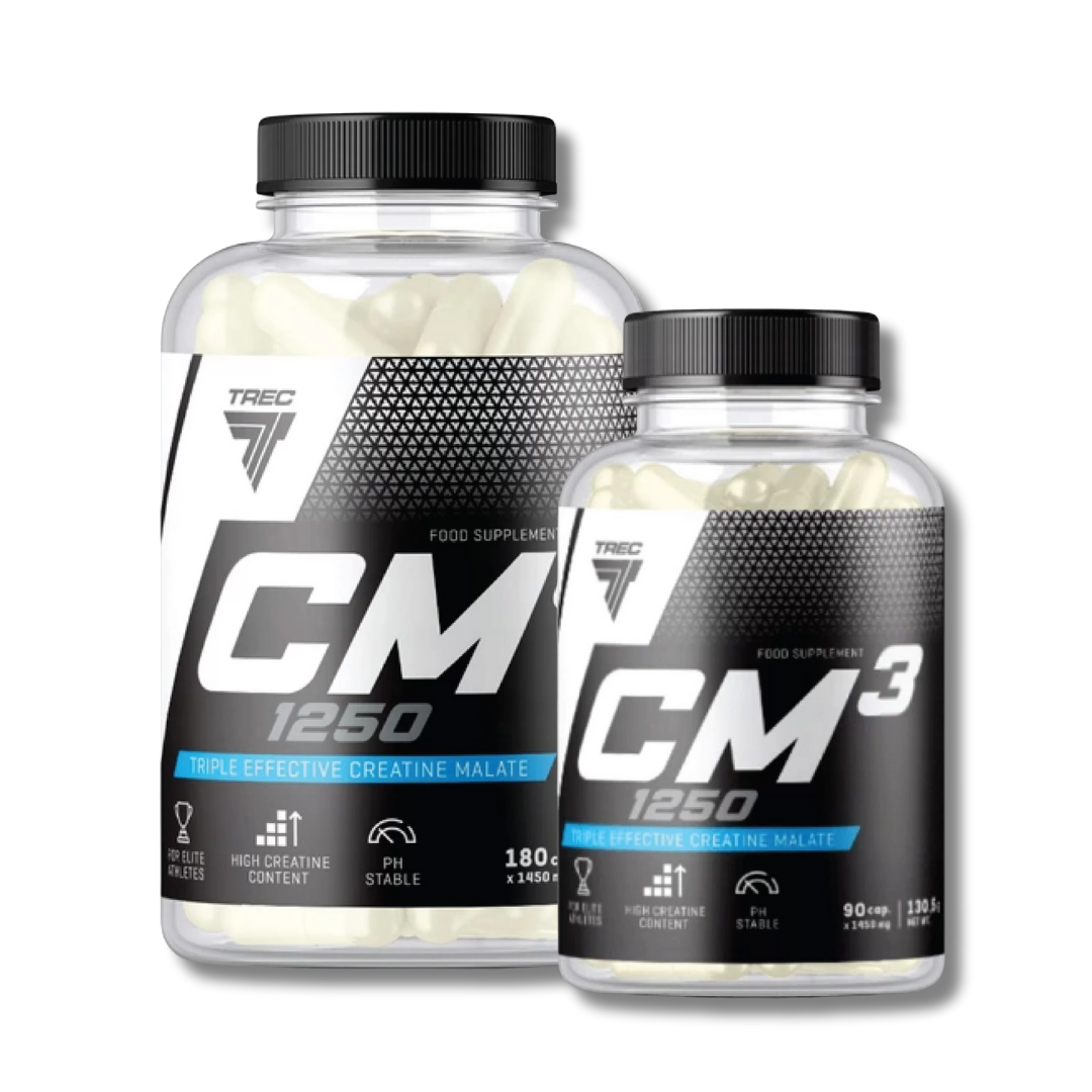 CM3 1250 от Trec Nutrition — это трикреатин малат в ударной дозировке. Трикреатин малат — усовершенствованная формула креатина, обладающая уникальными свойствами. Практически не изменяется под воздействием кислот пищеварительного тракта, быстро всасывается в кровь, поэтому за короткий период времени в мышцах накапливается еще больше креатина.